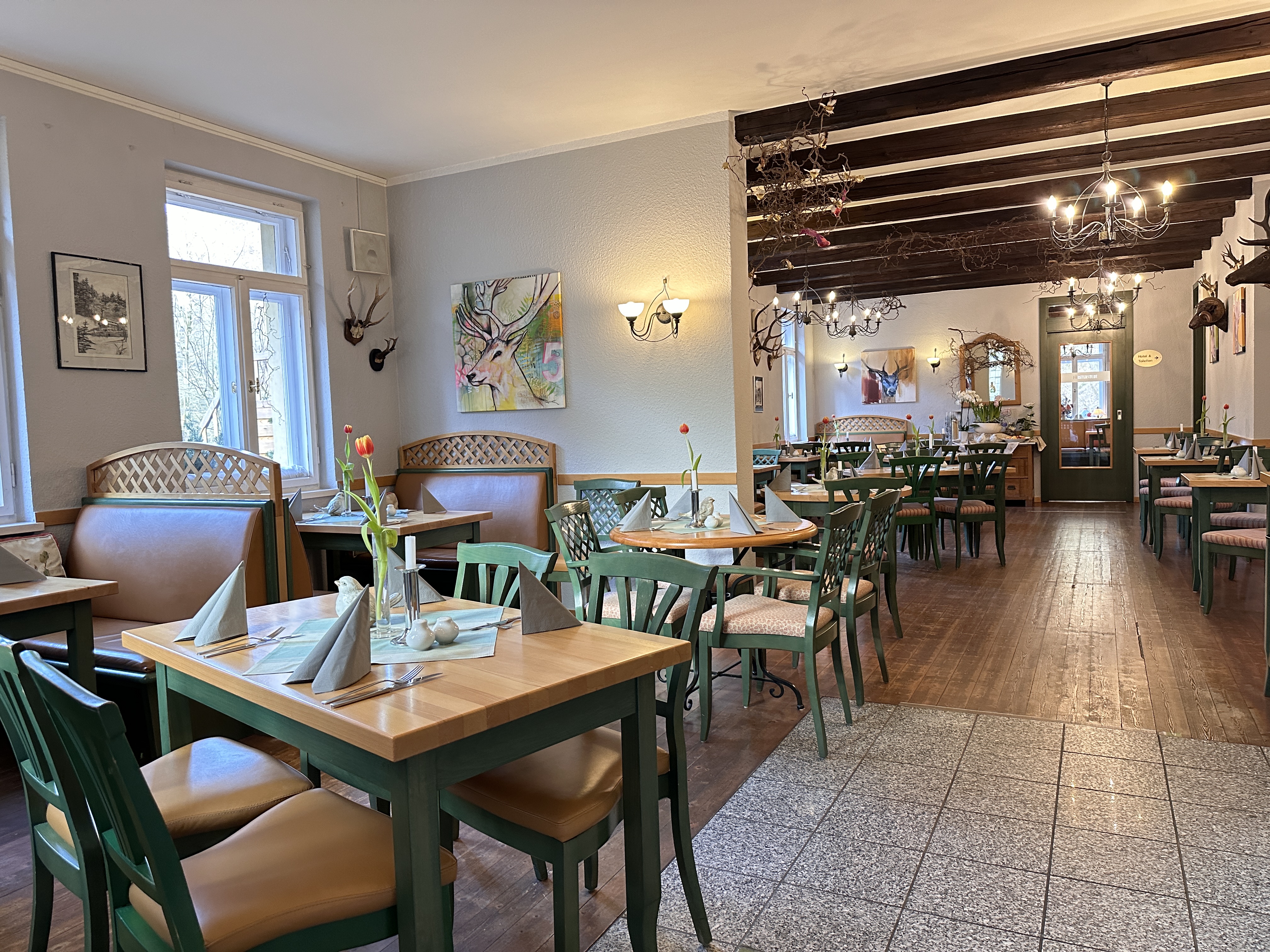 Besondere Gaumenfreuden erwarten Sie in unserem à-la-carte Restaurant "Kutscherstube" mit der separaten "Försterstube". Das Restaurant mit der großen Sommerterrasse ist bekannt für seine ausgezeichnete Küche mit saisonal wechselnden Speisen und Wildgerichten, die für die Region typisch sind.